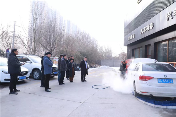 此次一行,多位領導主要對于我司的環(huán)保工作進行考察與指導并與集團領導進行深度座談。首先,各位領導最先前往了環(huán)美亞汽車精養(yǎng)館參觀了蒸汽洗車演示,并在展廳內(nèi)參觀了逸掌幫蒸汽洗車機的幾款車型,由河北逸掌幫商務服務有限責任公司總經(jīng)理趙博涵趙總對車型進行講解。